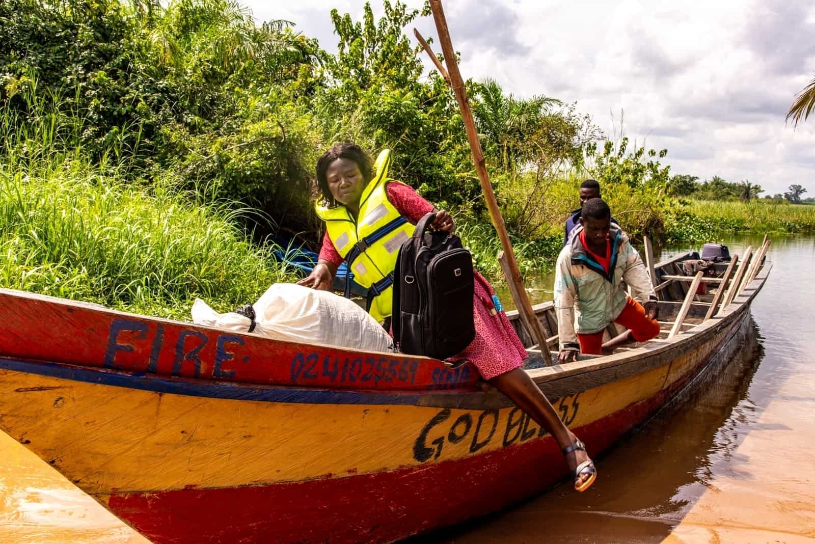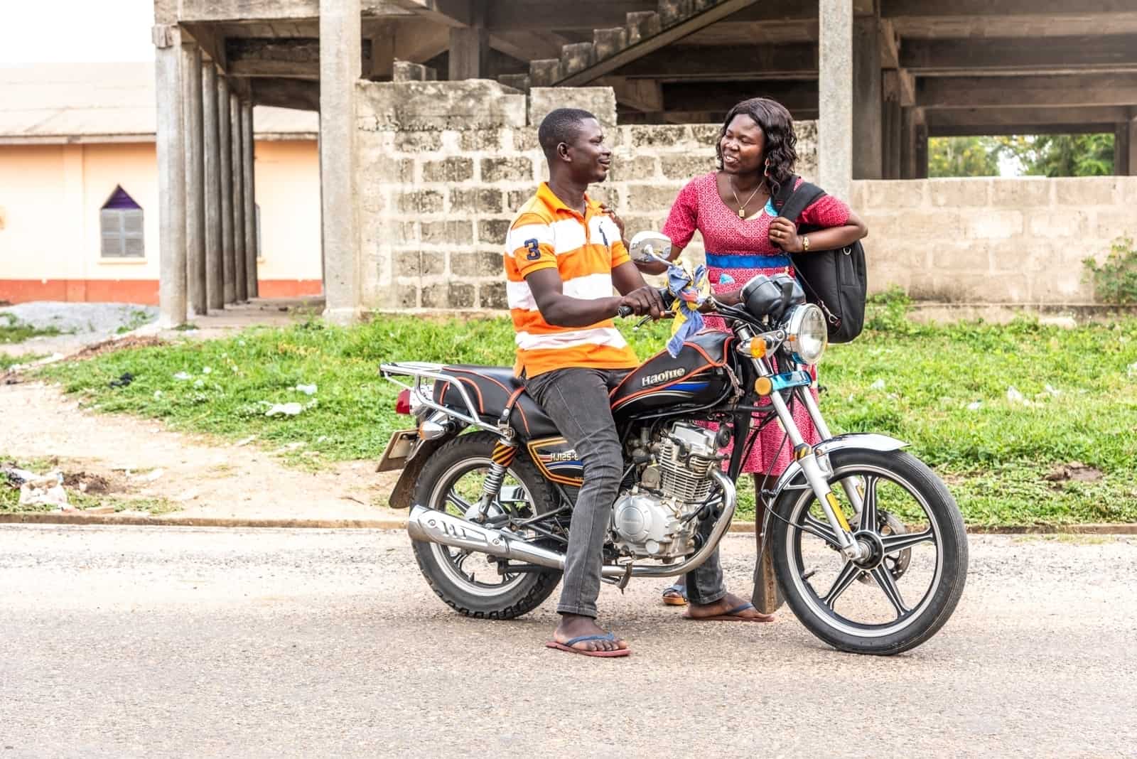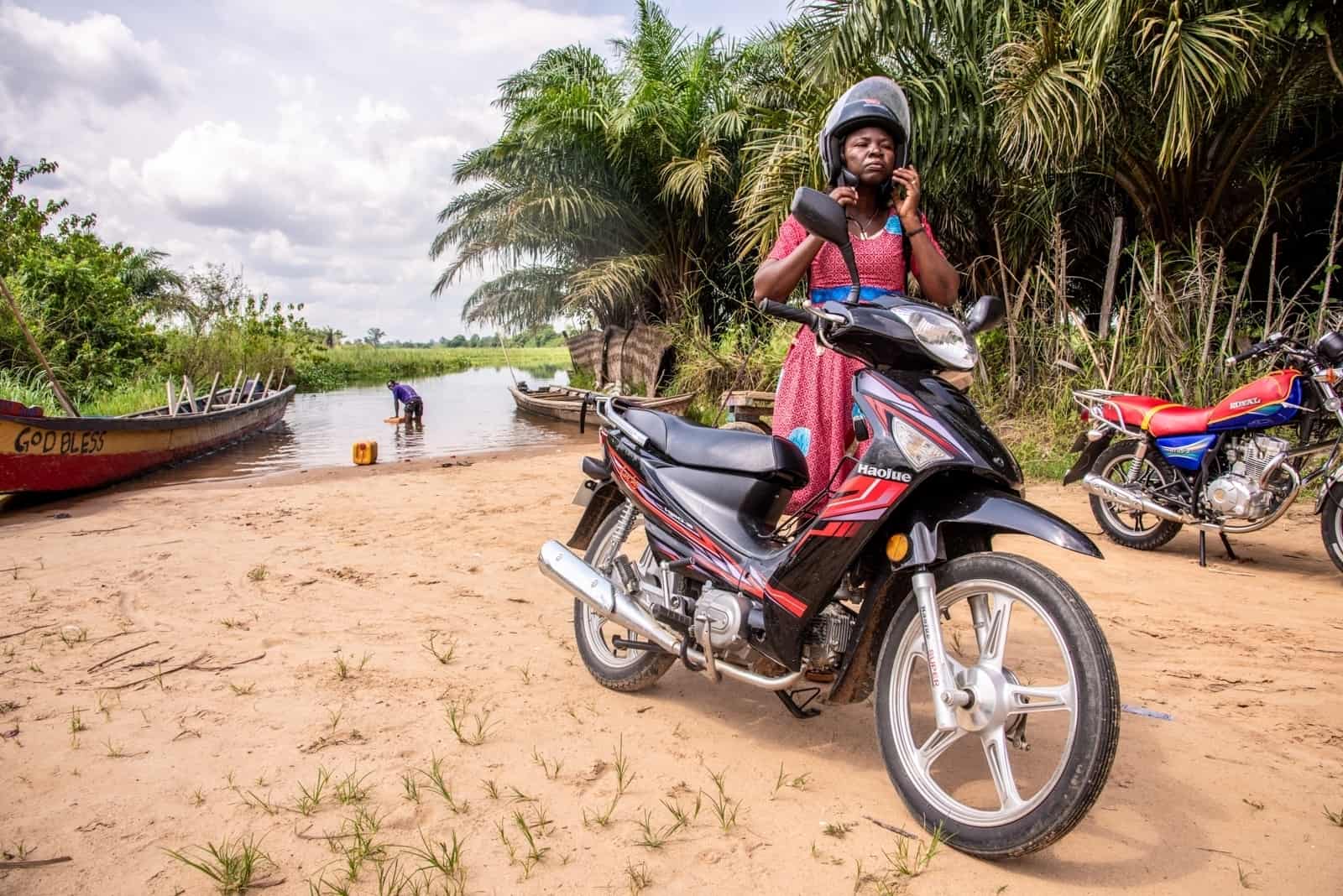 To get to Adidome from Dove, Lorlor has to cross the River Volta, which is about 30 minutes away by motorbike.